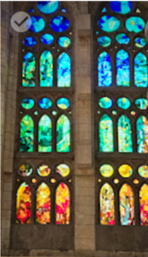 The tour took us by bus to part two, the Sagrada Familia. You might feel this building is so iconic that you can see all you need to see from outside and from photos online, but do not skip this tour. Our guide, who had seemed unenthusiastic at Parque Güell, pointed out so many interesting details here and it really was a treat. The style inside is so different from the outside - open and airy with a surprisingly modern feel. Gaudí was quite religious and also loved nature and was a big math geek, and you can see evidence throughout. Go in the morning or afternoon, when the sun will be at an angle, and bask in the light streaming through the stained glass. The morning sun colors are cool and the evening colors are warm; the contrast makes an amazing effect.