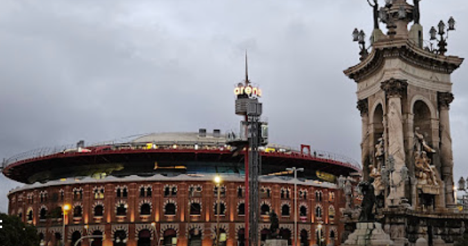 Fountain and monument to Bartomeu Robert. Torre Glòries in the distance. Paella on big gas burner. |
